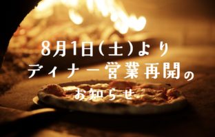8月1日(土)よりディナー営業を再開いたします。 再開に際して、下記の通り営業時間を一部変更し営業を行って参りますので、 ご確認の上ご来店をお願い致します。 ===========…