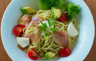 「冷製パスタ アボカドソース」 1,380円 自家製のアボカドソースにミディトマトとモッツァレラチーズ、生ハムをのせた夏のひと皿(((o(*゚▽゚*)o))) 昨年も好評だったため、今年も始め…